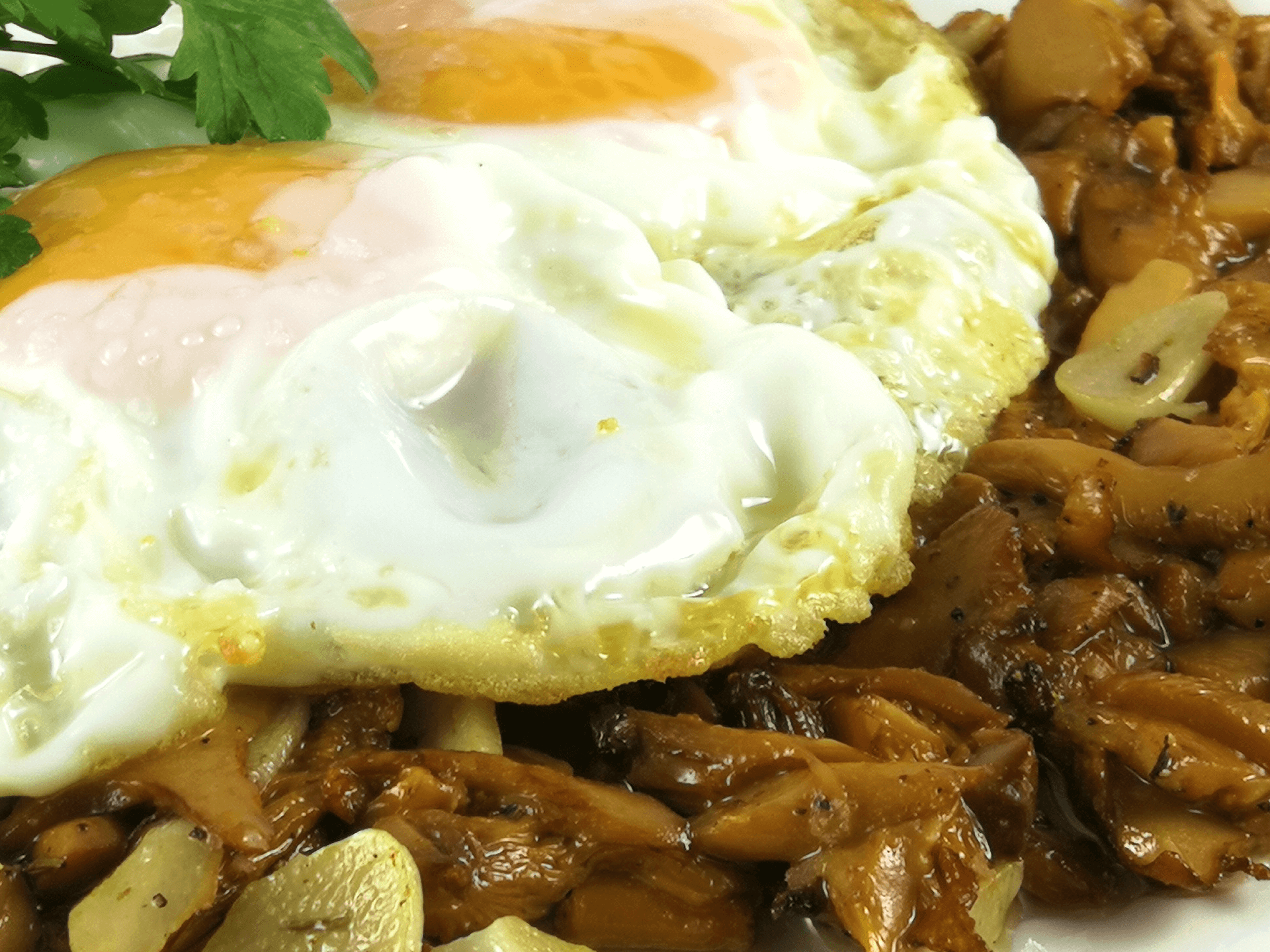 Te presentamos nuestro salteado de rebozuelos con huevos fritos.